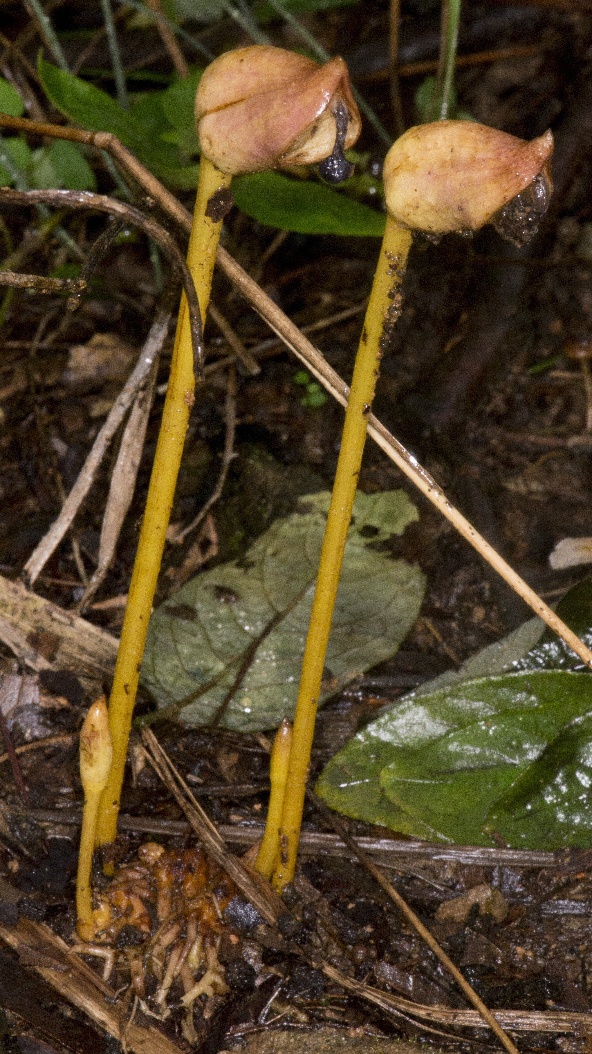 Fleshy, unbranched stem, reddish color.