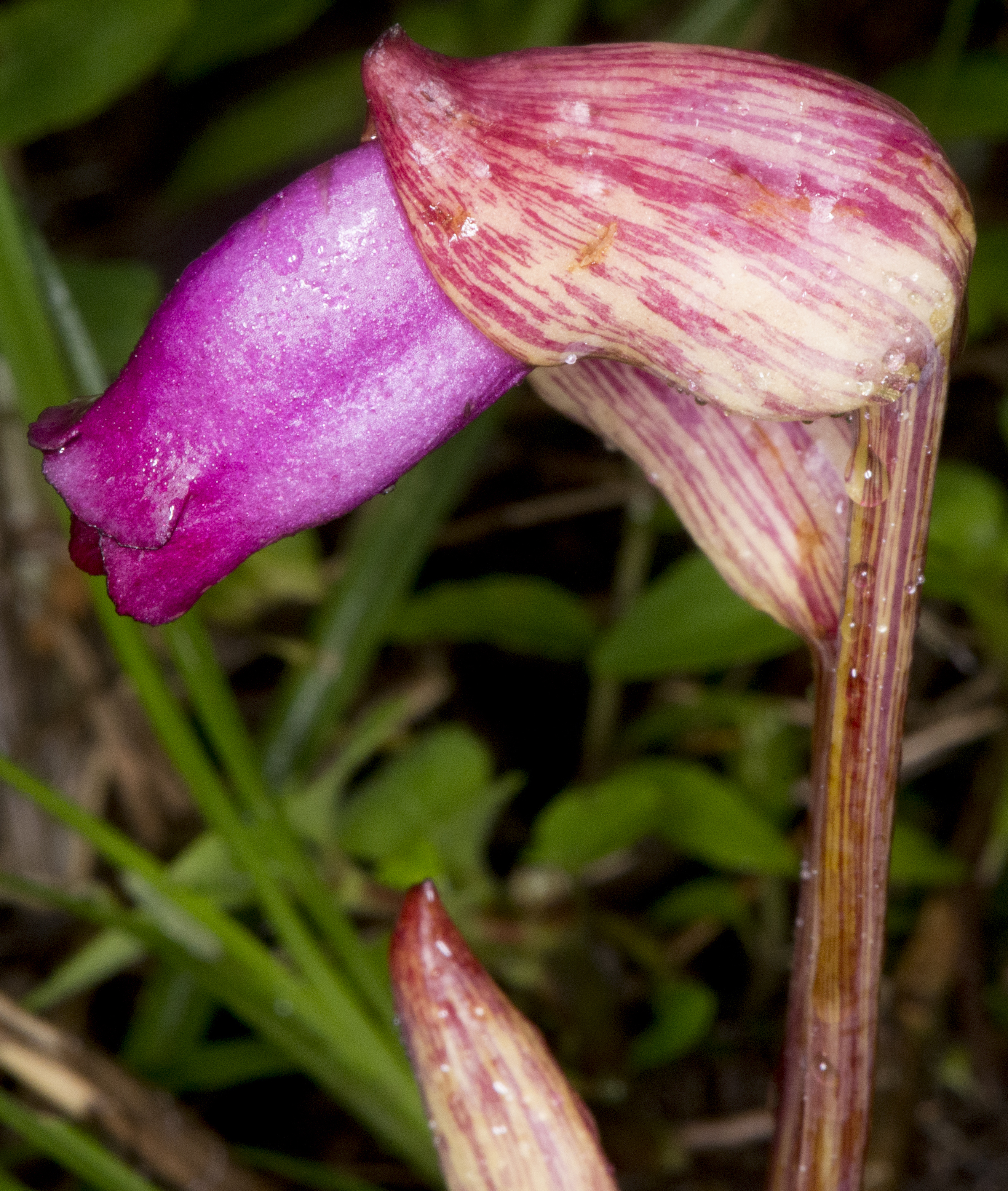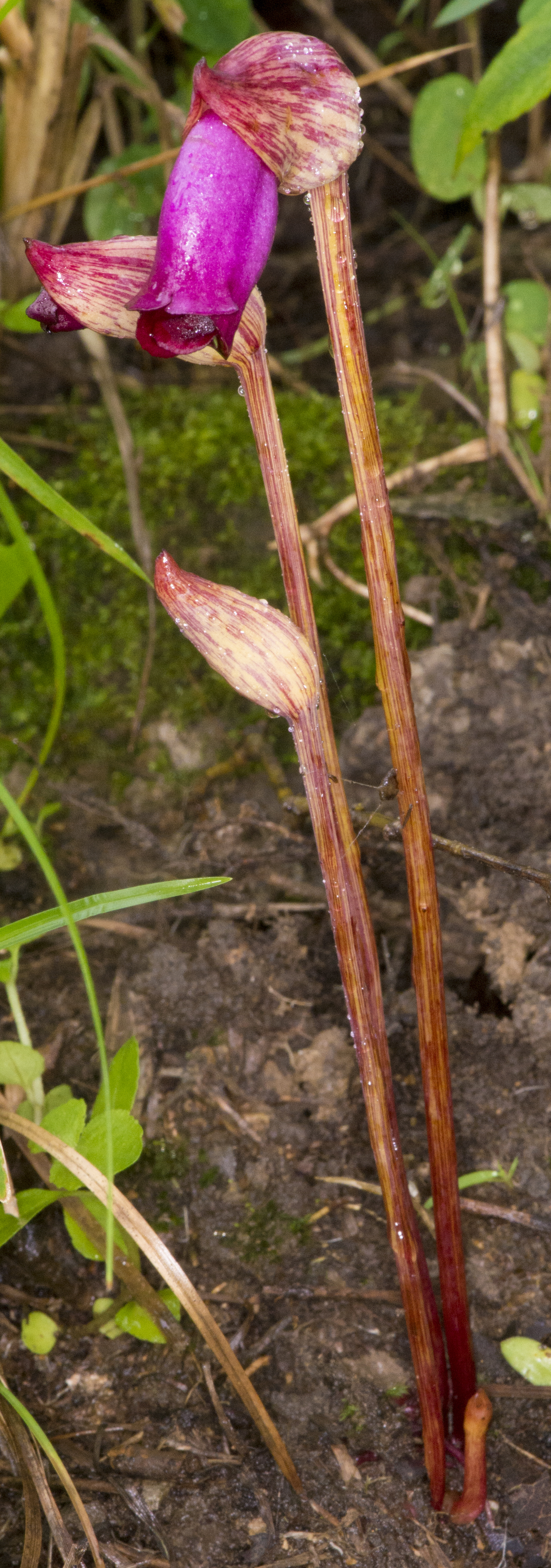 Reddish-purple, tubular, and solitary.
