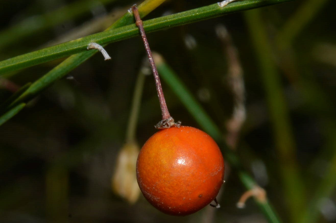 Bright red berry, 6-8 mm in diameter.