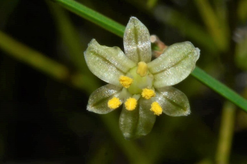 It has inconspicuous, greenish-yellow flowers that can be male or female (dioecious). They appear singly or in clusters of 1-4, with stalks (pedicels) 8-15 mm long. Male flowers are slightly larger (5-6 mm) than female flowers (around 3 mm).