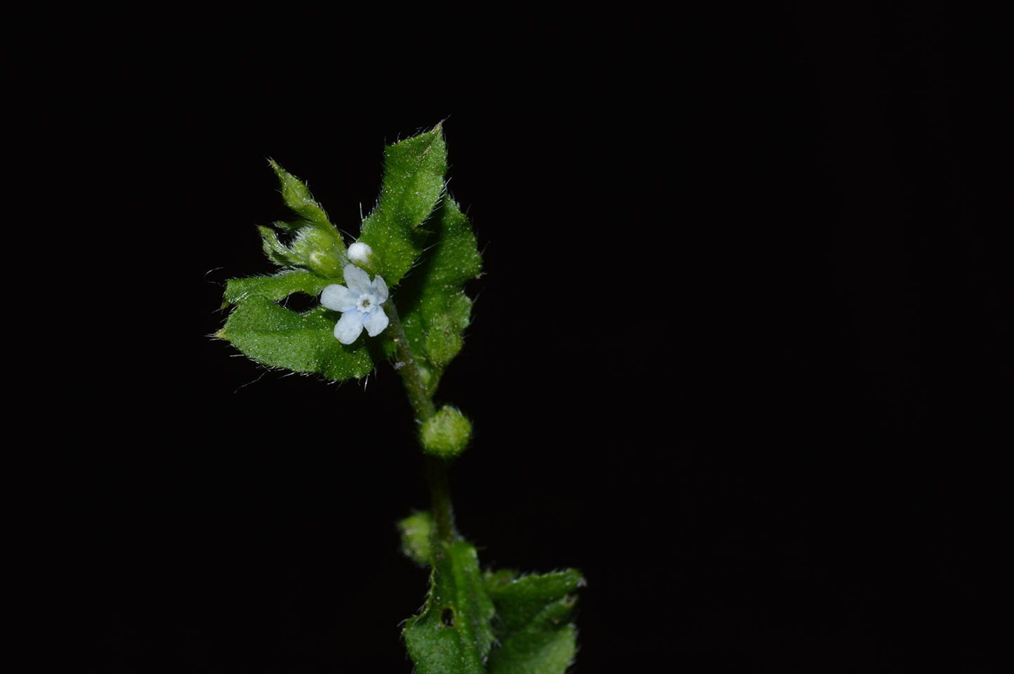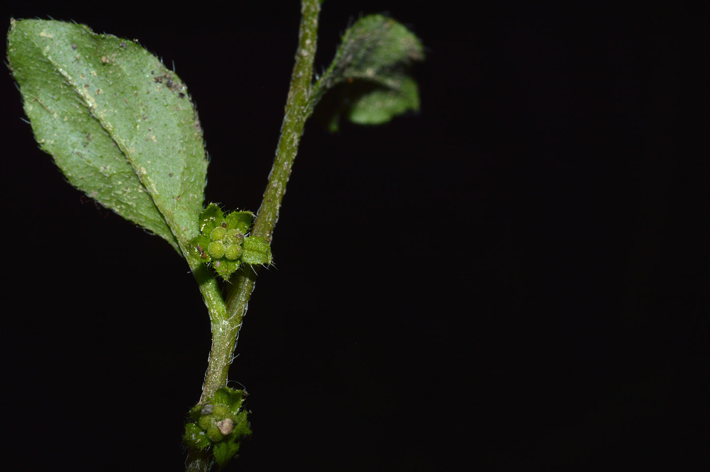 Stem is slender, densely packed, with multiple branches. These branches can be upright or lie flat on the ground (prostrate). They are covered in short, stiff hairs.