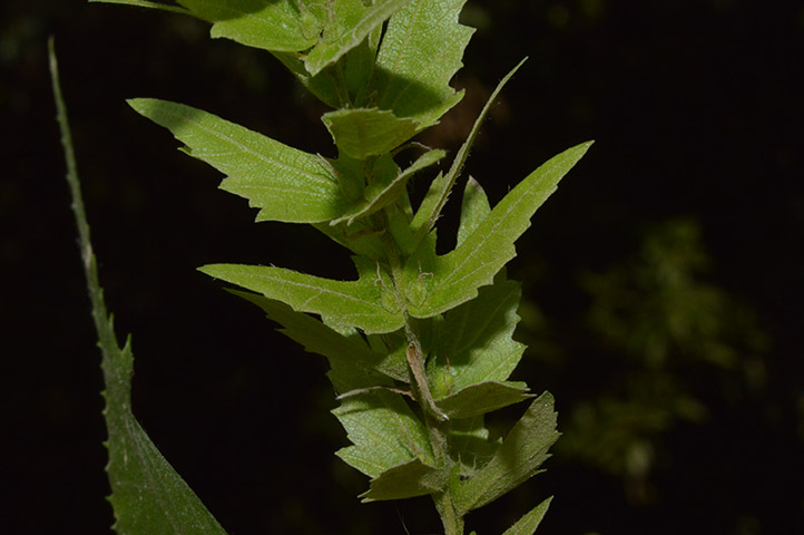 It produces clusters of tiny nutlets. Each nutlet is ridged and surrounded by a protective casing, about 2.5 cm long, shaped like a lance, and has small, pointed lobes at the base.