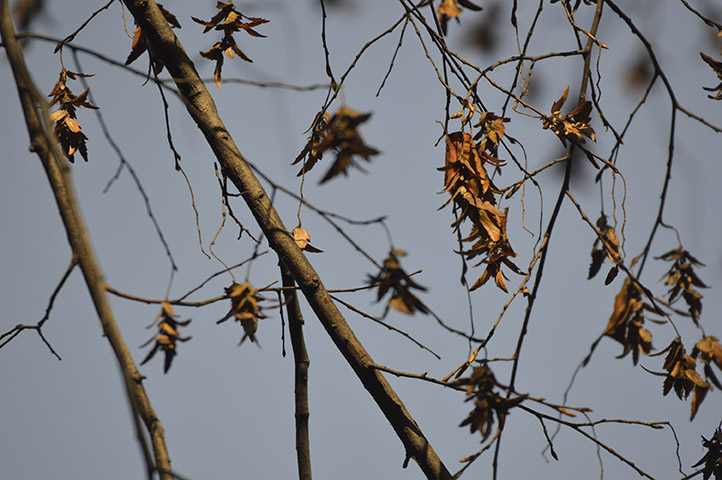 It has slender often drooping branches. Bark dark grey, mostly smooth. Twigs brown, glabrous.