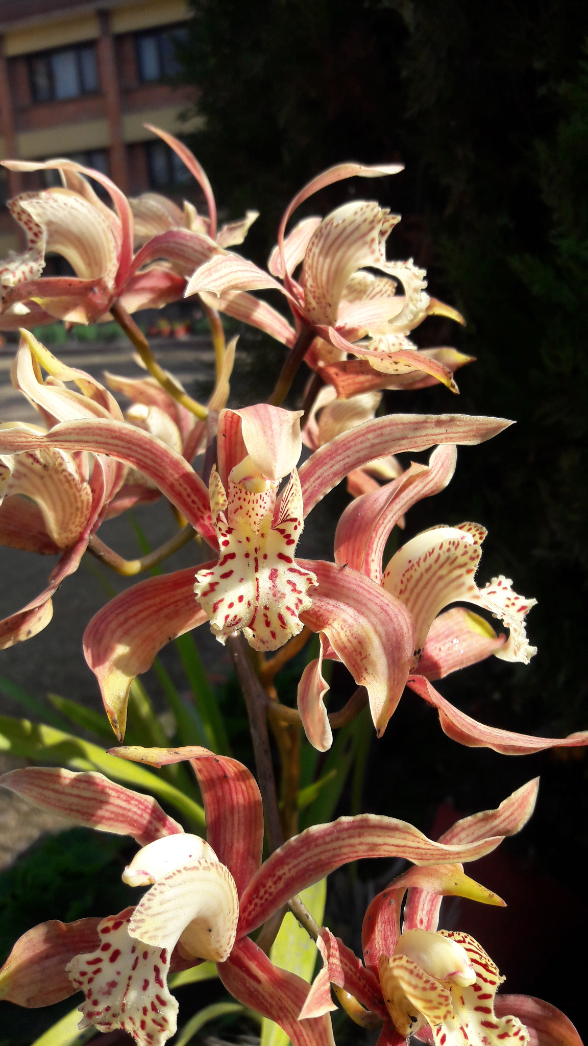 It blooms with fragrant flowers in yellowish-green with reddish-brown stripes. These large flowers (9-10 cm) have three lobes and a long-lasting, sweet fragrance.