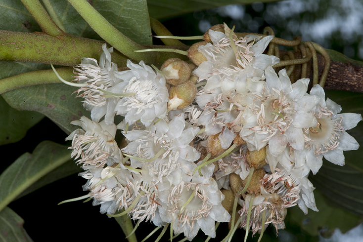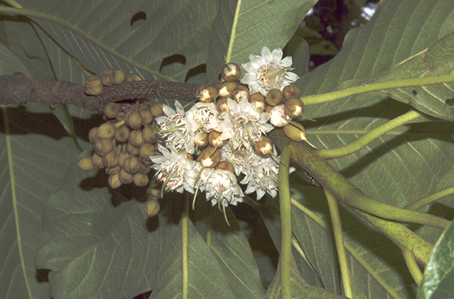 Fruit is ovoid-globose to oblong, 2-2.5 X 1-1.5 cm, smooth, tip pointed, exocarp fleshy, 1-3-seeded