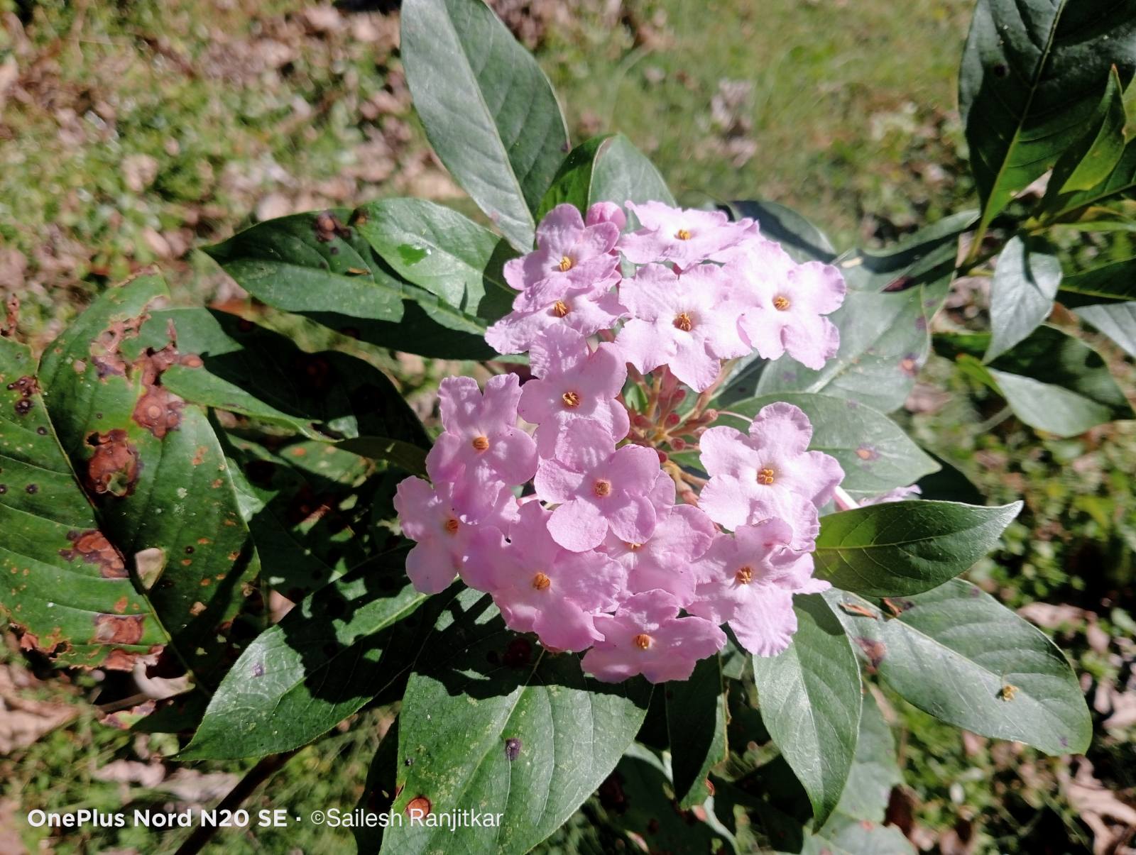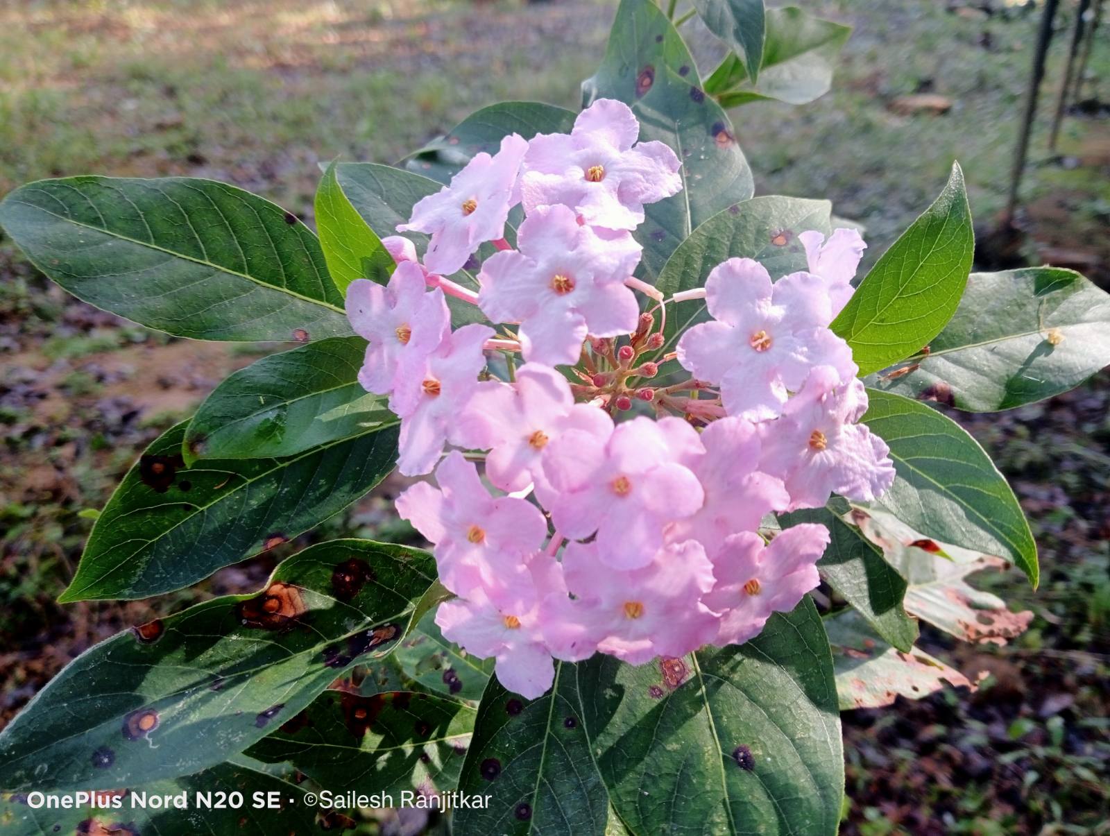 Flowers are highly fragrant, producing a strong, sweet scent. They are borne in terminal clusters, with each flower having a tubular corolla with four to five lobes. The flowers are typically pinkish-white in color.