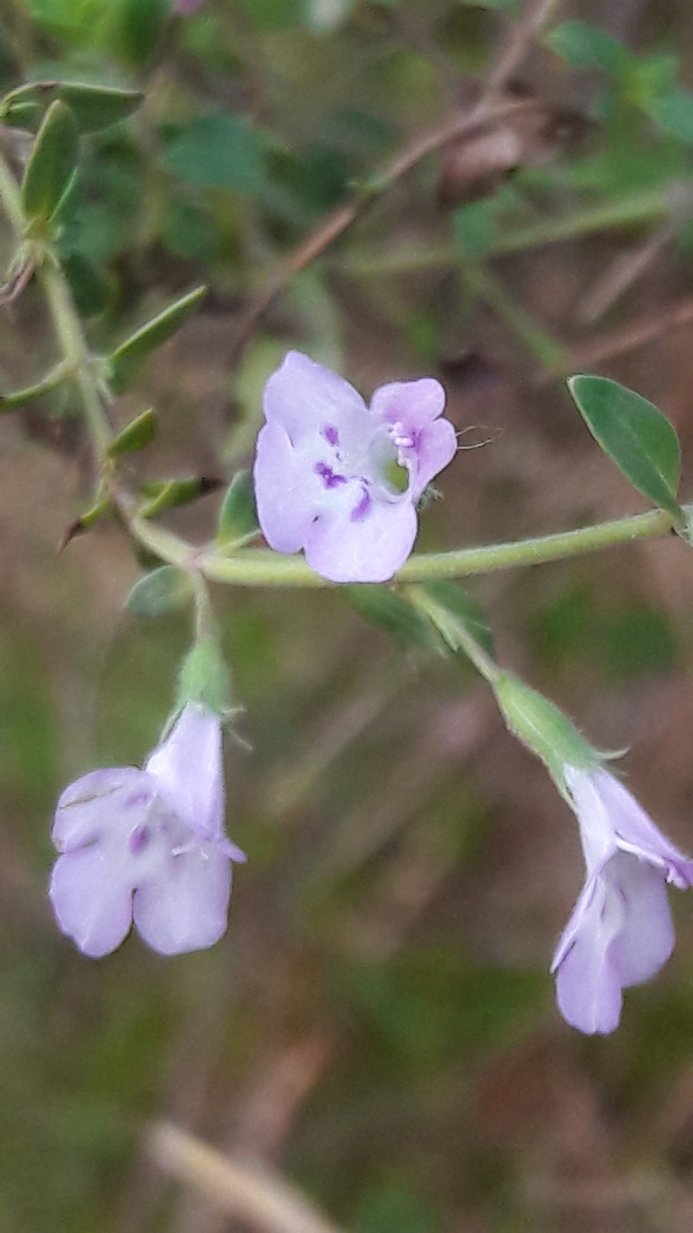 Flowers are rose to mauve (pink to a pale purple), clustered in few group. Flower stalks are erect-spreading, 0.1-0.3 cm long. Sepal cup is narrow, tubular, 0.3-0.4 cm long with spreading hairs. Flowers measure 0.6-0.7 cm long.