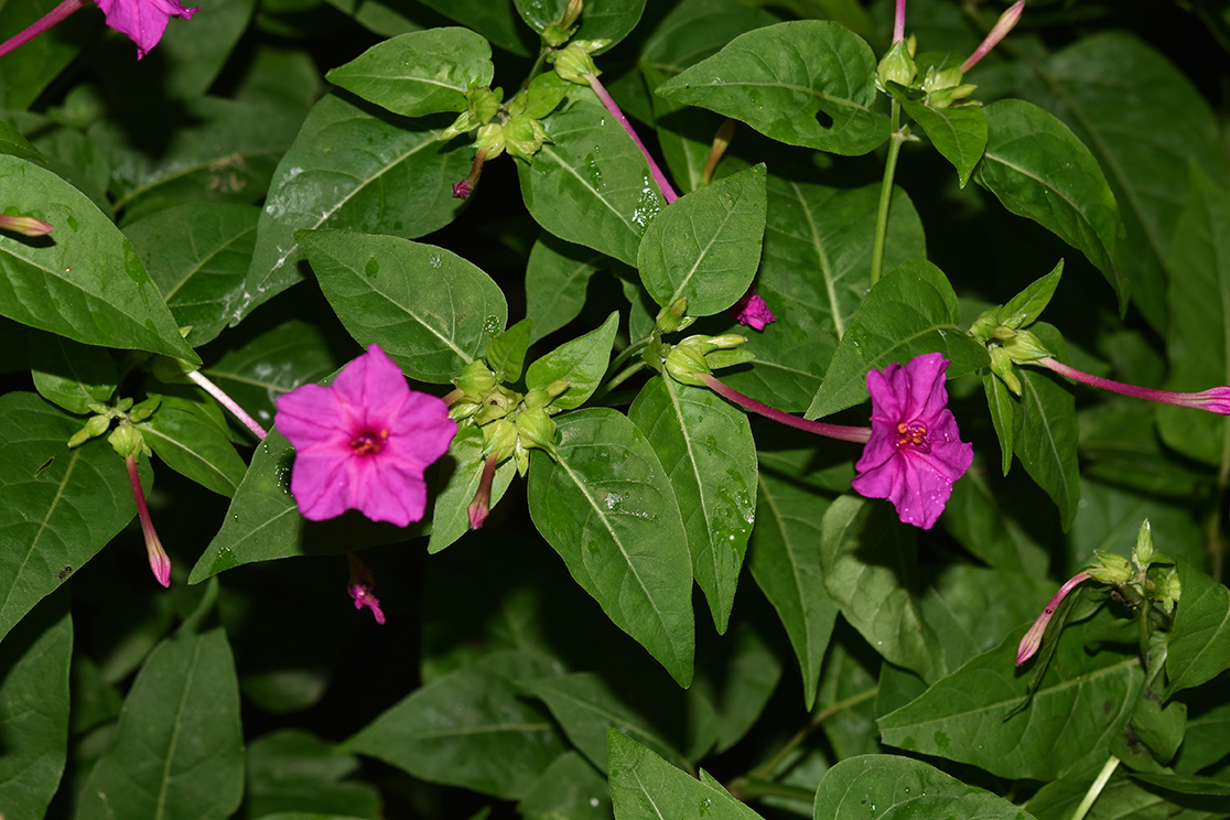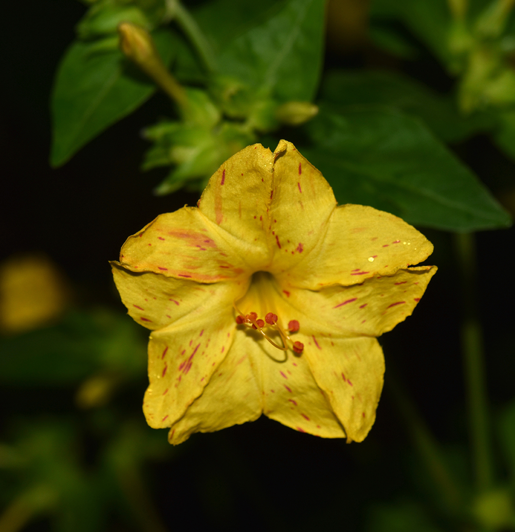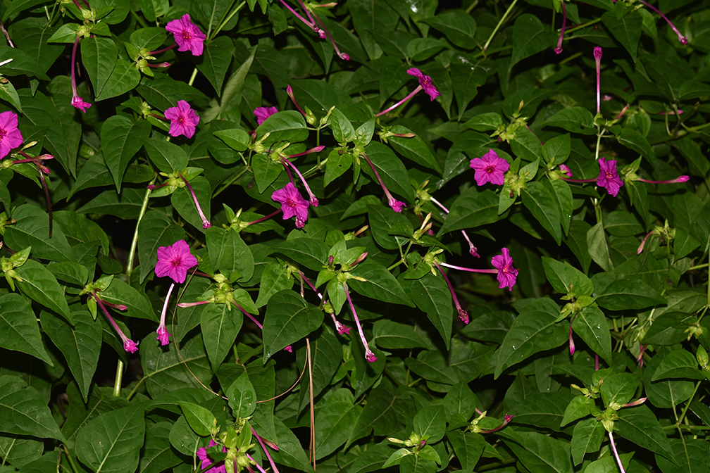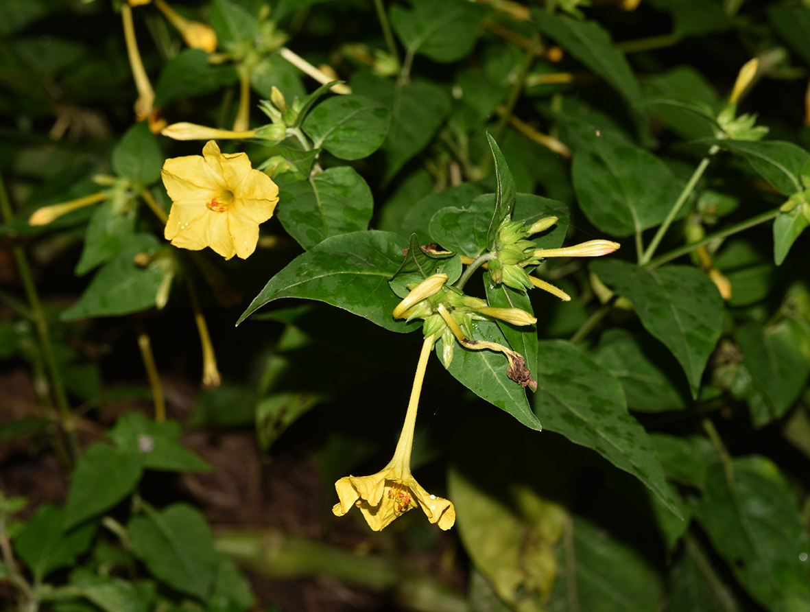 Trumpet-shaped, colorful (white, pink, red, yellow, or variegated), opening in late afternoon or cloudy weather.