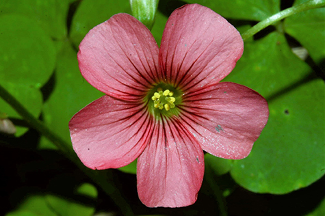 Pink, borne in umbels, flower stalks velvety, sepals lance-shaped and velvety, petals hinged at base.