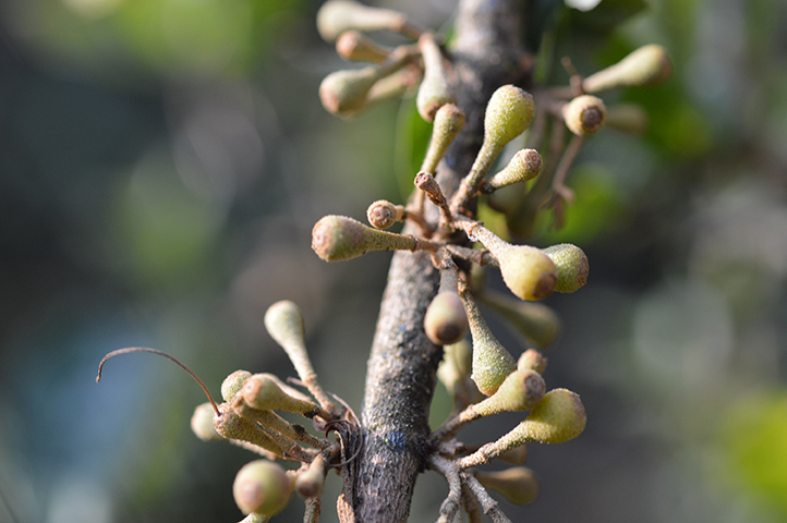 Small and inconspicuous, clustered in axillary (growing in the angle between leaf and stem) or leafless nodes. Each flower cluster has 3-7 individual blooms. Yellowish-green color.