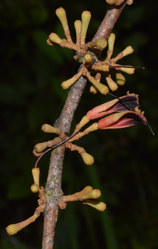 Young leaves have a brownish or ferruginous (rusty brown) pubescence (hairy covering). Mature leaves become glabrous (smooth).