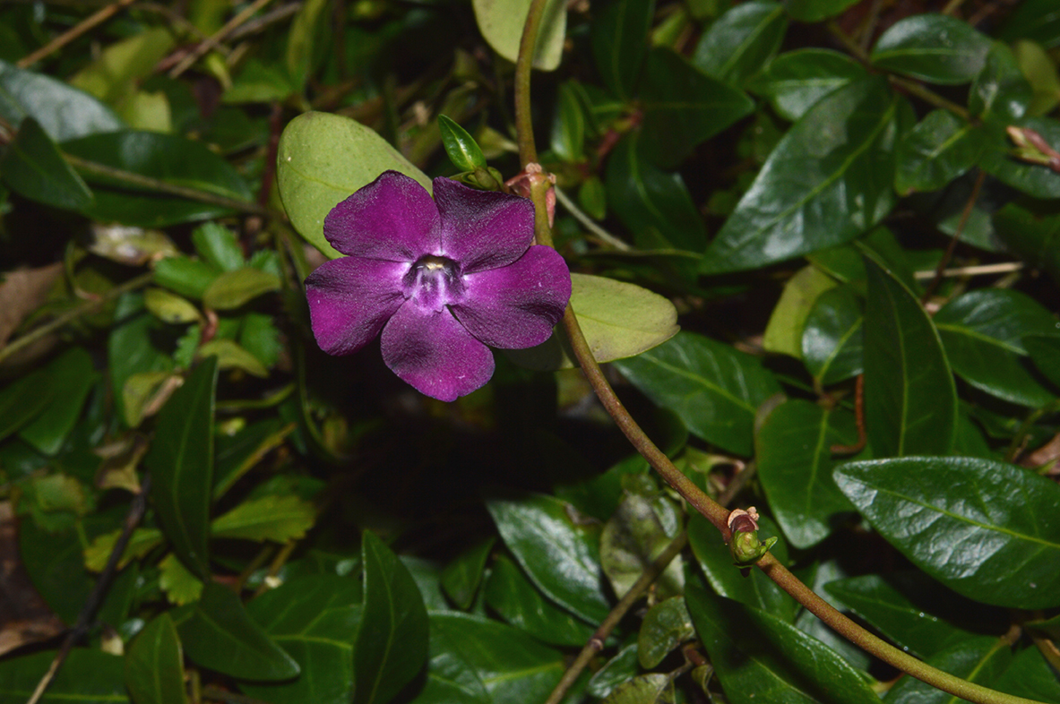 Flowers are solitary in leaf axils, mainly from spring to mid-summer but can bloom into autumn. Violet-purple (sometimes white or pale purple), 2-3 cm in diameter.