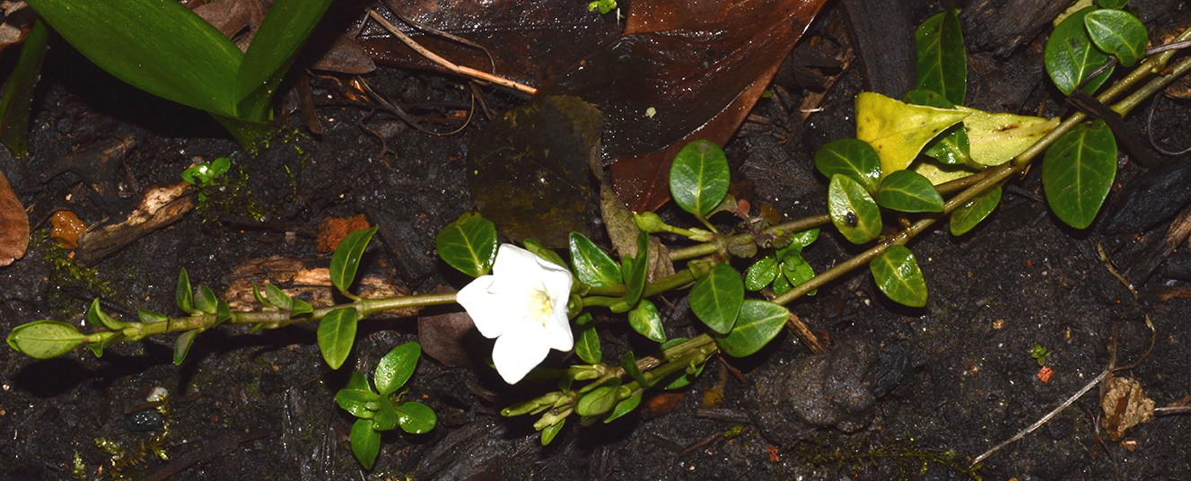 It is trailing subshrub spreading along the ground rooting at nodes to form dense mats. Occasionally reaches 40 cm height but doesn't climb.
