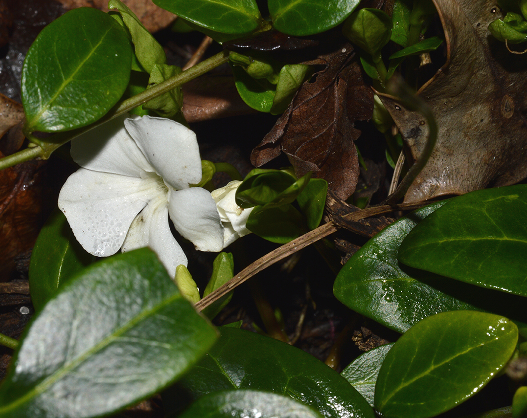 Leaves are evergreen, opposite. Each leaf is 2-4.5 cm long and 1-2.5 cm wide, dark green, glossy, and leathery.