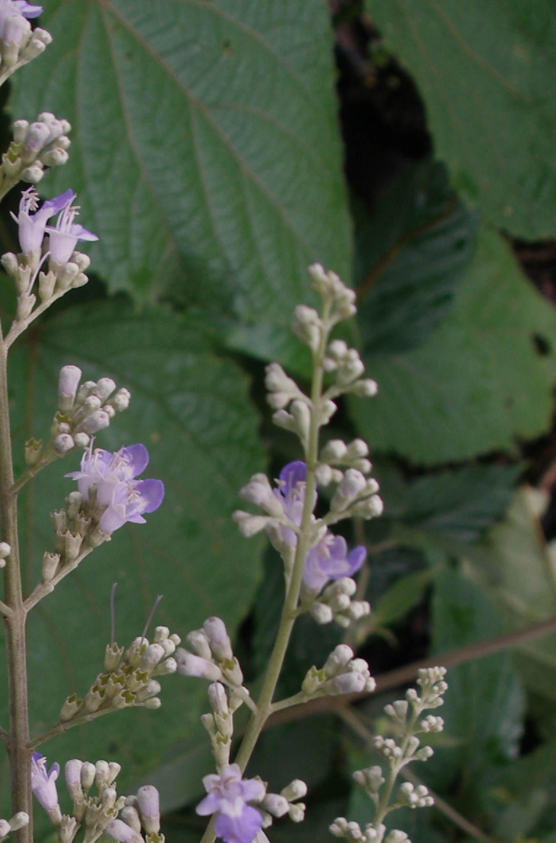 Flowers are small, lilac or violet, arranged in panicles 10-20 cm long. Each flower is about 0.6-0.7 cm long.